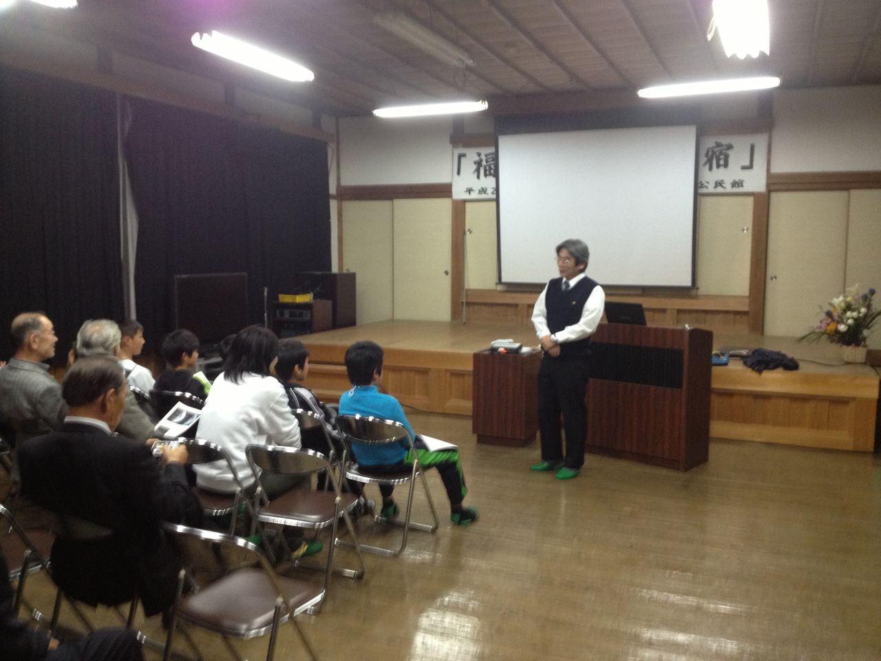 教育委員会の方が気遣いを頂き、一番前の席へ座らせて頂きました。