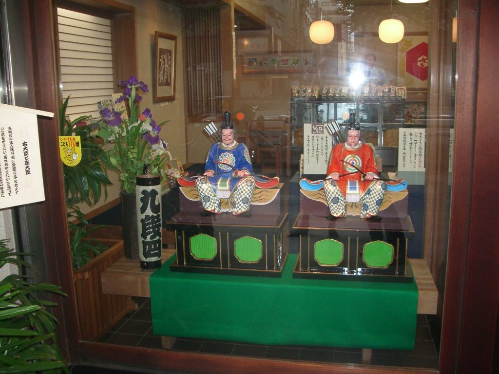 ショーウィンドーには、九段4丁目町会のお祭りに向けての人形が展示しています。