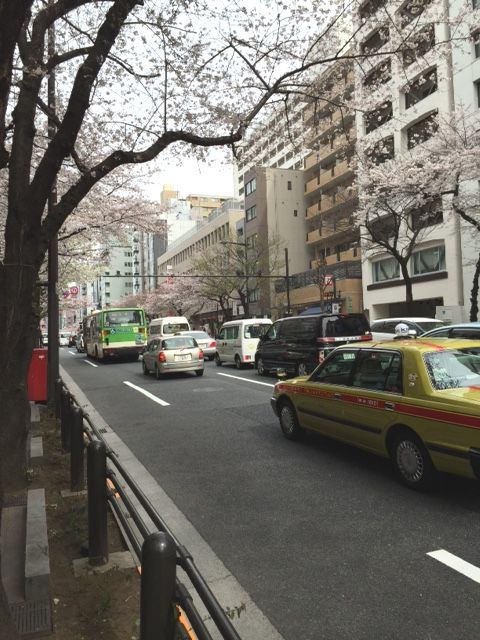 画像は花見の影響で珍しく渋滞の靖国通りです。