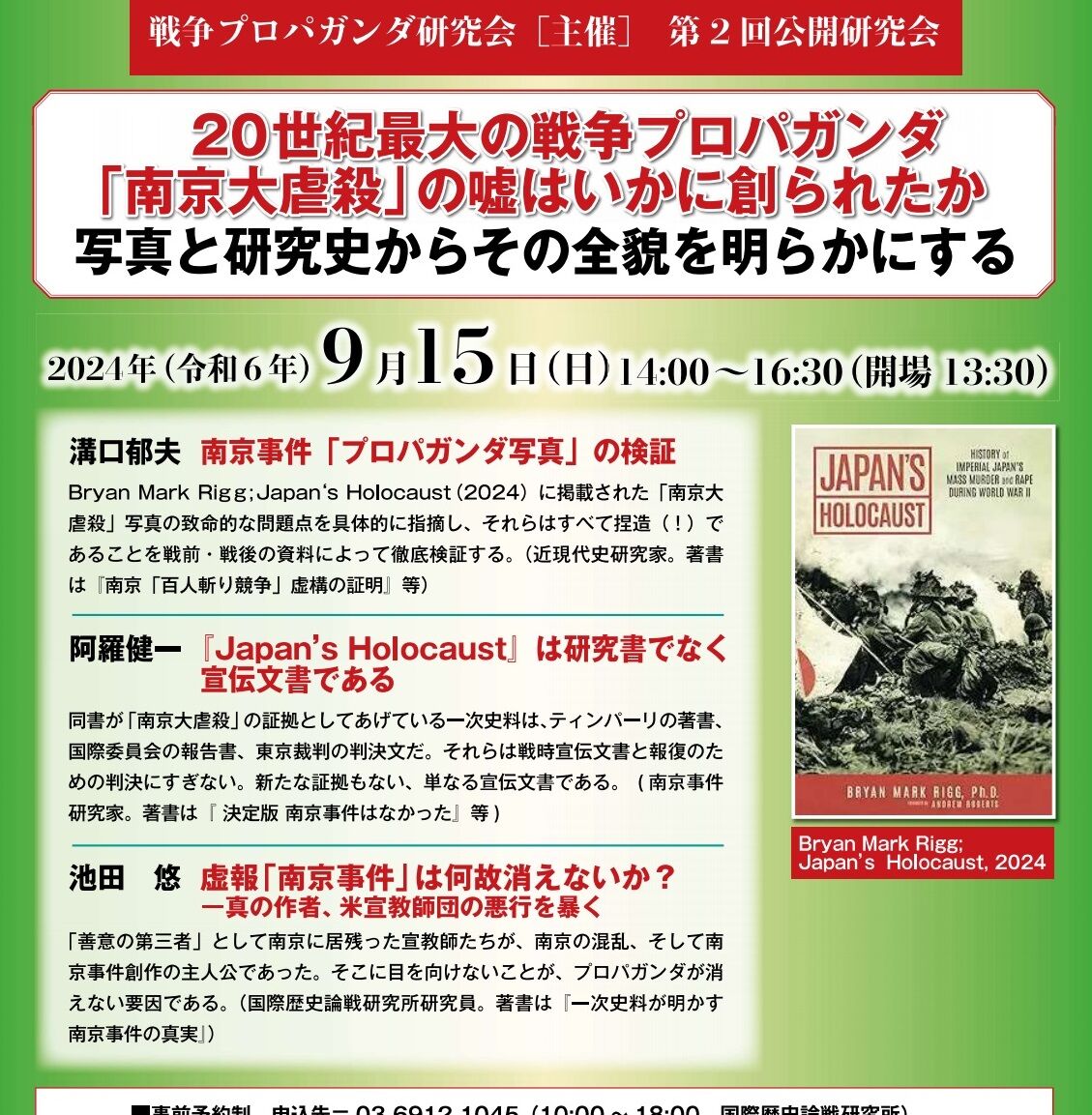 私も9月15日の講演に参加したいと考えメールを送りましたが、どうなる事でしょう。