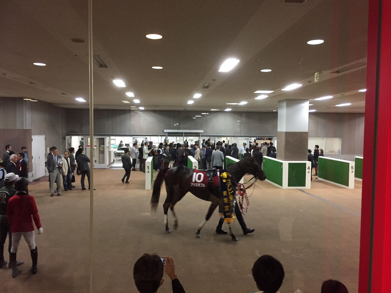 検量室がガラス越しに見えるところです。もちろんここも必見。テレビで見るレース後の検量室の様子が間近で見れます。