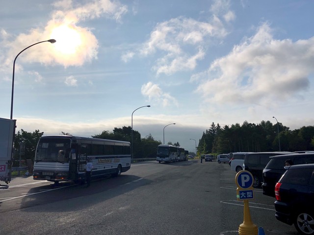 明朝、あたりも明るくなったころ花輪SAで休憩。早朝ということもありアナウンスはなかったのですがここでも乗客は外にでて休憩することができます。が、睡魔には勝てずそのまま爆睡…