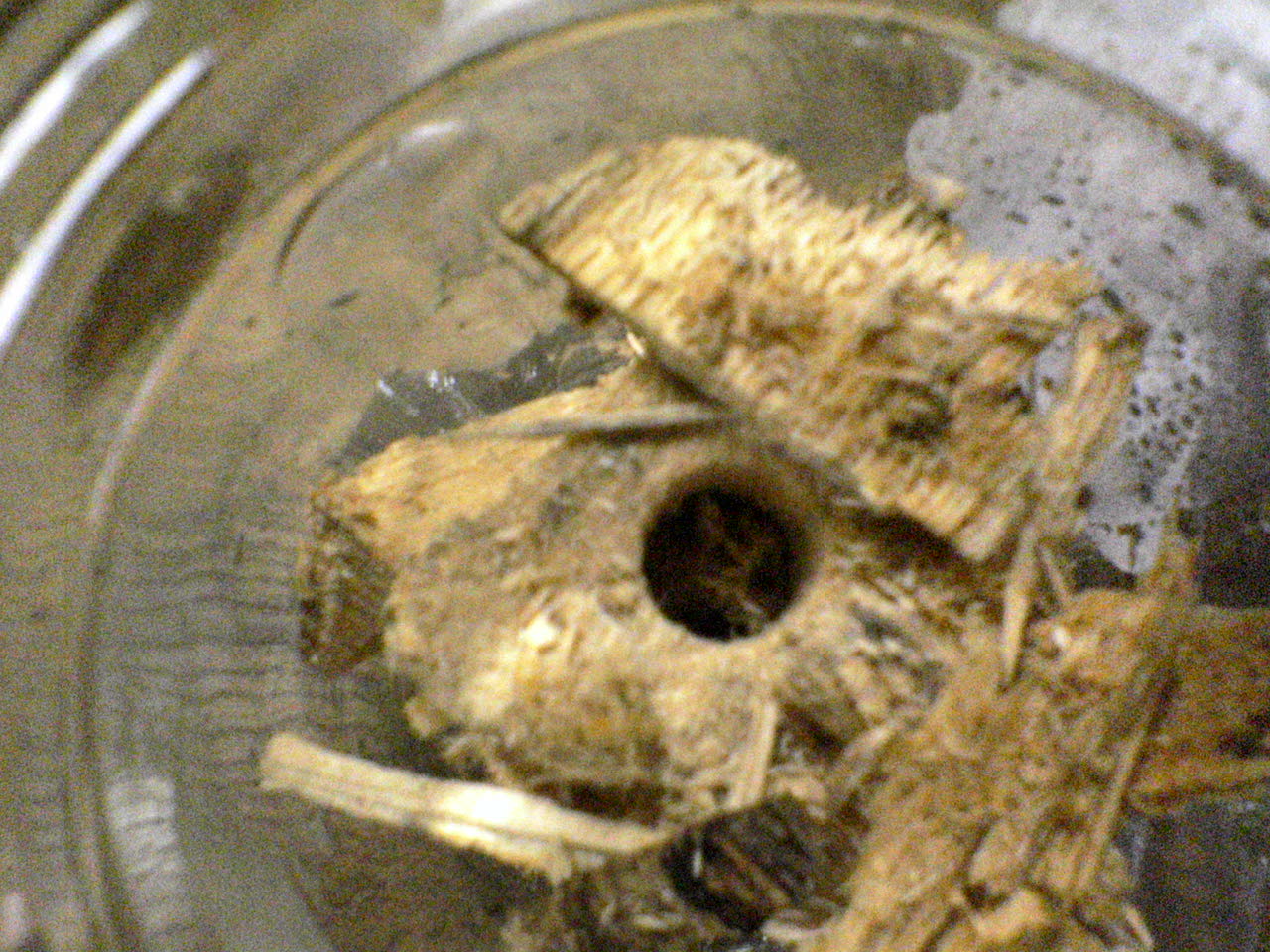生きているか心配だったのですが、木屑をつめるために幼虫を出したらまだ生きてました。ホッ。いちおう木は取り替えておきました。