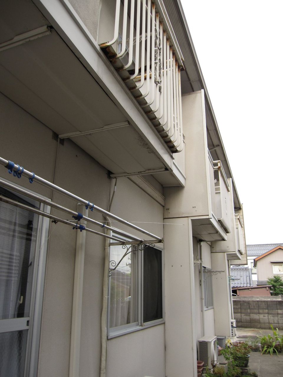 画像は問題のドレーン排水があふれ下に落ちていたベランダです。建物は積水ハウスの軽量鉄骨造で結構痛んで鉄部が腐っているところがあります。そのため、ベランダ床面の排水も上手く流れていません。この様に鉄部が腐り出すと大変です。