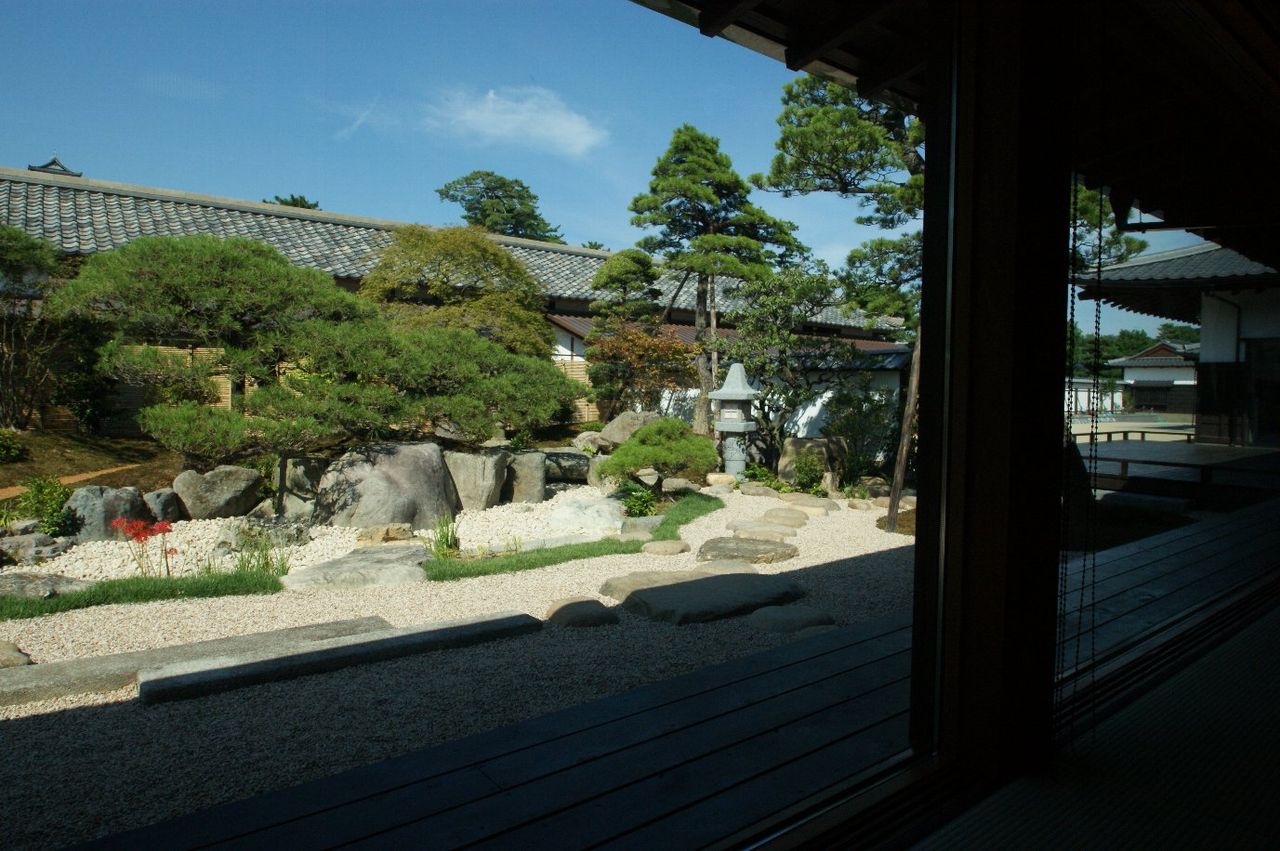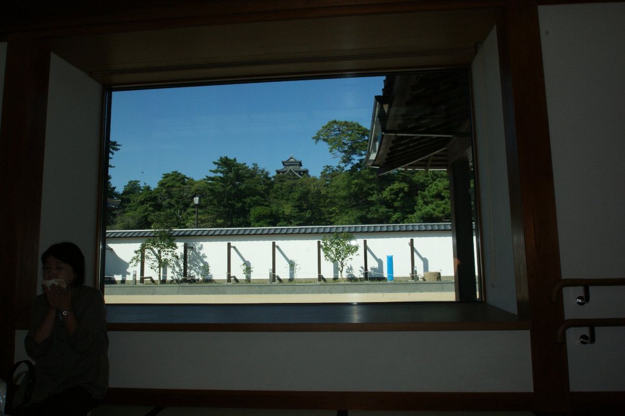 出雲らしさを出した庭園からも松江城を見ることが出来ます。