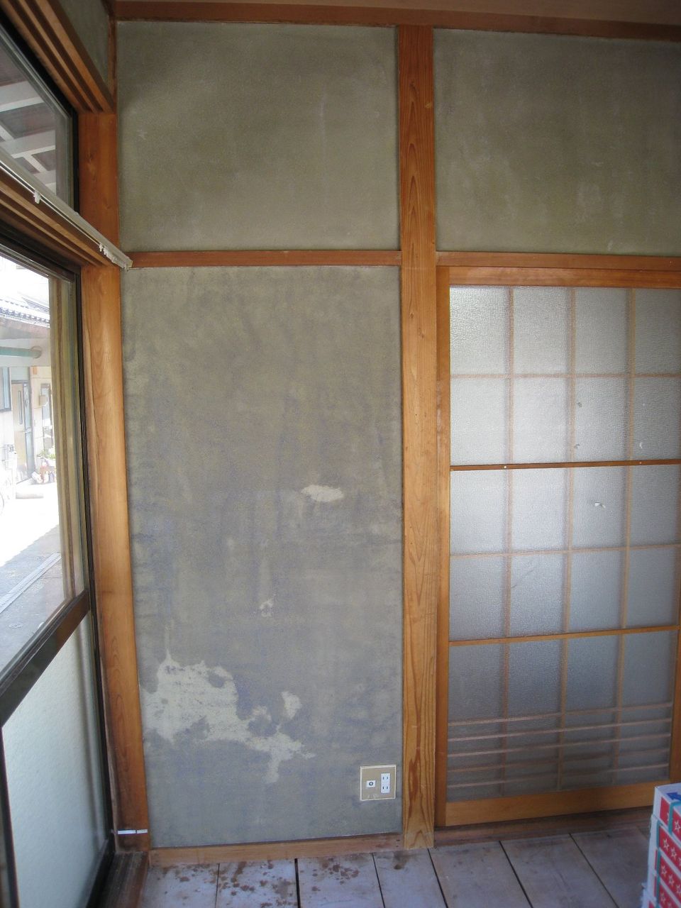 上塗の剥ぎ取りが終了した壁です。良く乾燥させ、パテ処理などをしてビニールクロスを貼ります。