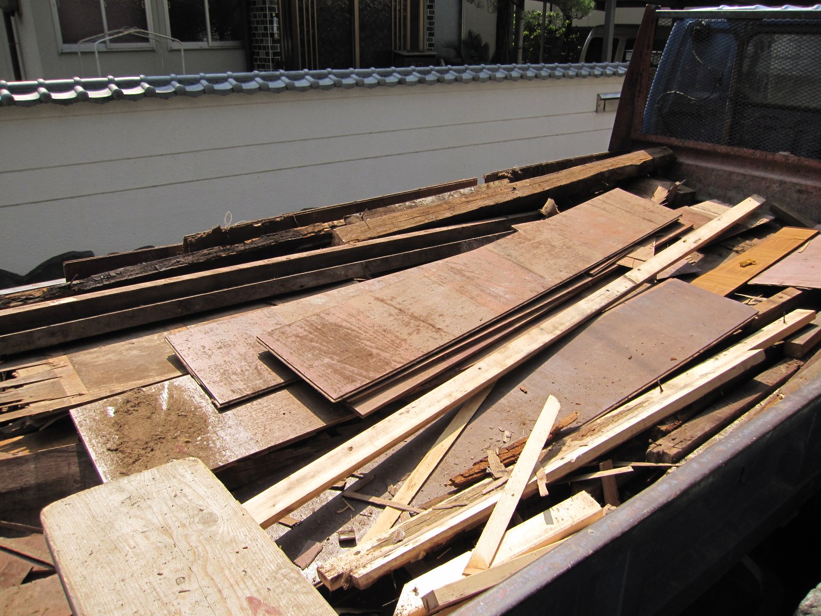 そこで工事途中の続報です。今回はそれほど大がかりの工事はないのですが、2階の二部屋の床を畳敷きからカラーフロアー張りに変えます。この種の工事が最近は多いのです。理由なんですが、畳の場合、入居者が入れ替る度に表替えをするのが普通です。もちろん、畳表の状況が良ければOKなのですが、やっぱり畳は青い方が見た目がよいので取替える場合が多いのです。そして1畳あたり最低でも4000円から5000円は掛るので、6畳なら3万円程度は掛ります。昔ならこのお金も借主側負担が多かったのですが、今は家主負担が通常です。ですので、和室が多いと入居者が替る度に結構お金が掛るのです。一方、床がカラーフロアー場合は入居者が入れ替る場合は通常の掃除をしワックスを掛けるだけです。しかも、ワックス掛けの費用は通常の掃除に含んでいますので、カラーフロアー自体には追加の費用は掛りません。この様に、カラーフロアーは家主さんにとって有利なのです。それと、昔なら、畳自体を好まれる傾向がありました、今はそれほどでもないし、どちらかと言えばフロアーが好まれることも一つの理由です。でも、これには問題があるのです。そうです、畳が少なくなれば畳屋さんにとっては死活問題なのです。今回も、要らなくなる畳を畳屋さんに処分してもらいました。もちろん、付合いのある畳屋さんですので喜んで処分していただきました、内心は辛いのかもしれません。
