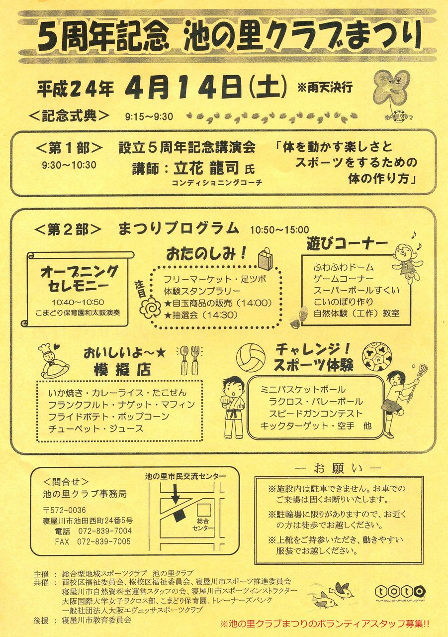 池の里クラブまつりのボランティアスタッフを募集しています。連絡ください!!