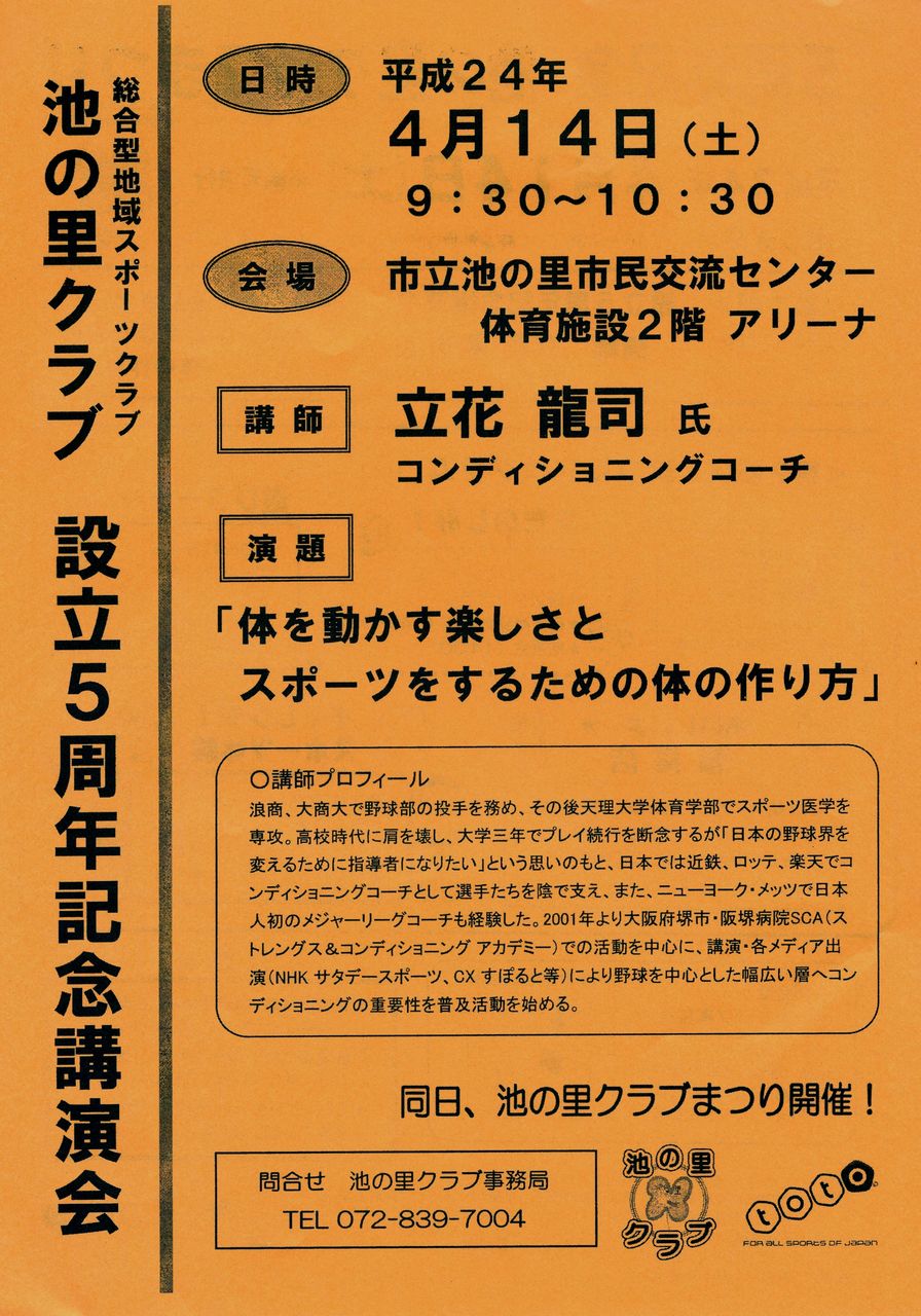 コンディショニングコーチ立花龍司氏をお招きし、記念講演会を開催。
