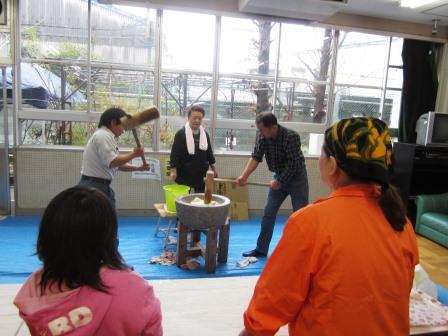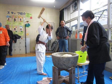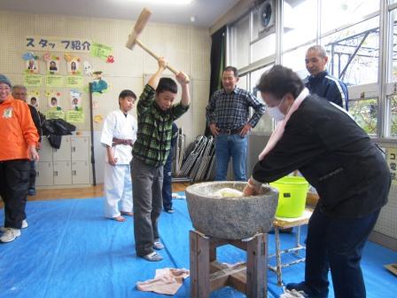 H26.2.8(土)もちつき大会昨夜からの雪、恒例のもちつき大会が始まるときには冷たい雨!あいにくのお天気でしたが、みんなで「おもちつき」楽しみました!スタッフのみなさん、ありがとうございました。