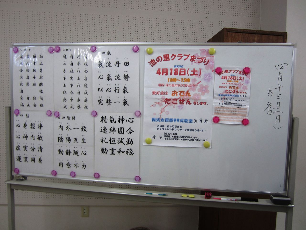 池の里太極拳愛好会をWATCH経験の浅い方が活動開始前に講師から直接特訓池の里クラブまつりの太極拳愛好会バージョンを作ってくれました!