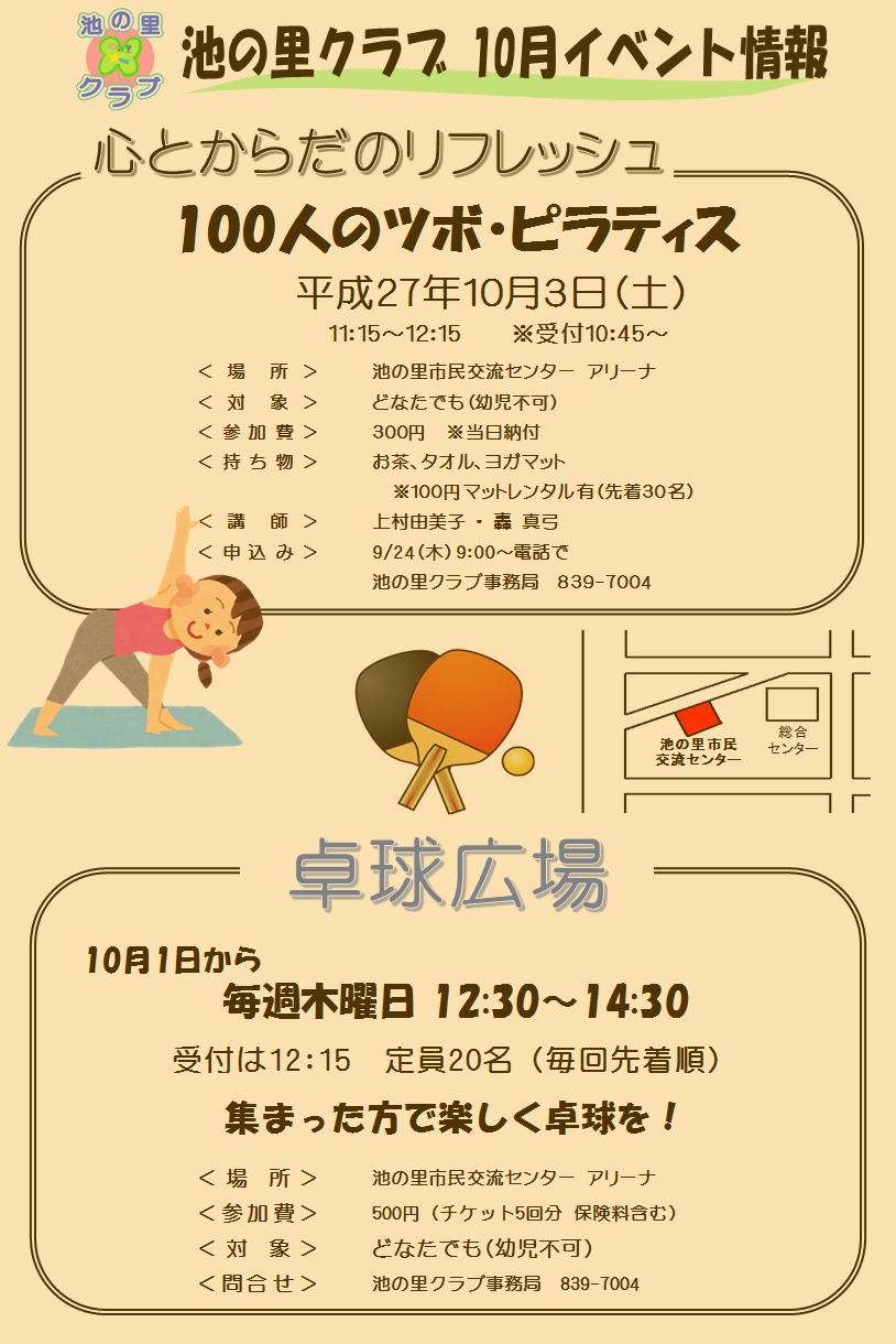 卓球広場・親子ふれあいヨガ教室 参加者募集!