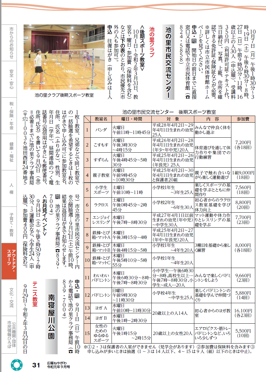 <申込み> 池の里クラブホームページ(問合せ欄)
