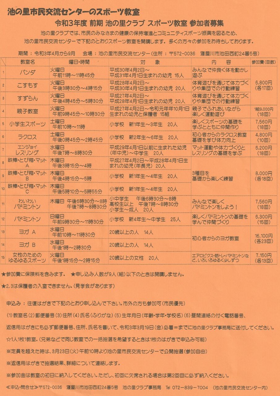 令和3年度 前期 スポーツ教室の参加者を募集中!