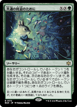 ベイレンを出した直後にトークンによるマナ加速での次アクションかドローを狙える状態で展開します。共通の利益のためにはトークンから生み出したマナでトークンを大量生成できる強力なフィニッシュカードです。