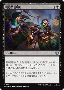 【戦略的裏切り】は追放タイプの布告除去と墓地追放がひとつになった呪文です。