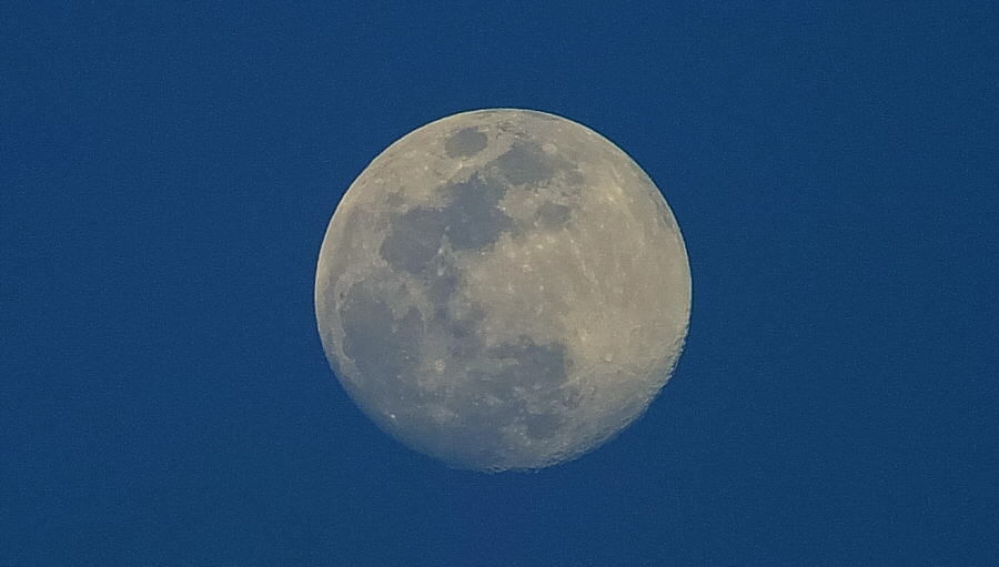 夕方の空に見えた月齢13の月。 京都府八幡市男山石城付近より。
