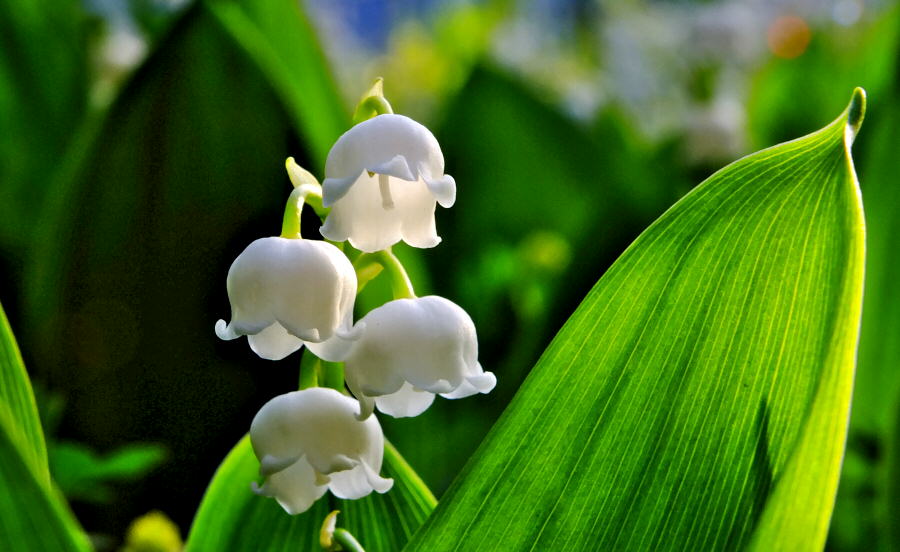 スズランの花。 京都府八幡市上津屋里垣内、流れ橋交流館内。