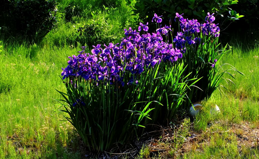 国指定重要文化財・伊佐家住宅の蔵と前庭に咲いていた菖蒲(あやめ)の花。 京都府八幡市上津屋浜垣内、庄屋屋敷伊佐家住宅。