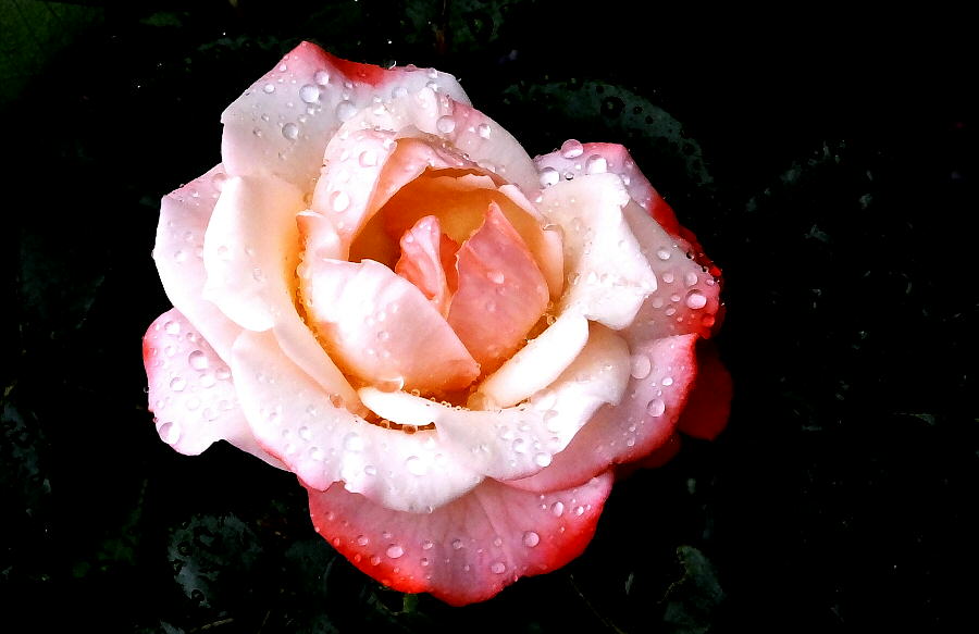 雨滴をつけたバラの花。 京都府八幡市男山泉付近。