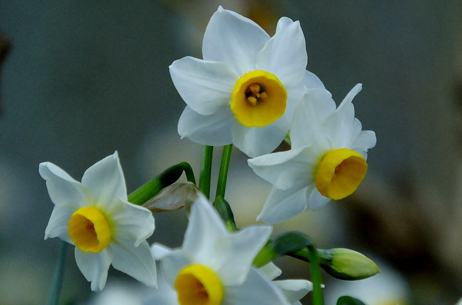 鐘楼の付近には沢山の水仙の花が咲いています。 京都市左京区浄土寺真如町、真如堂境内。