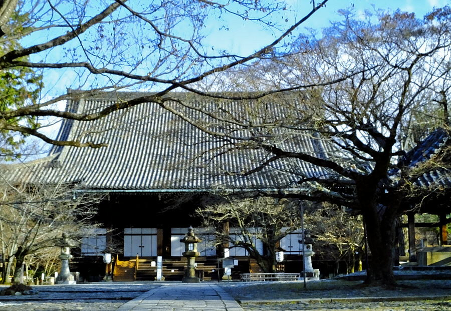 午後から時間調整に寄った真如堂の冬枯れした参道と本堂。 京都市左京区浄土寺真如町、真如堂境内。