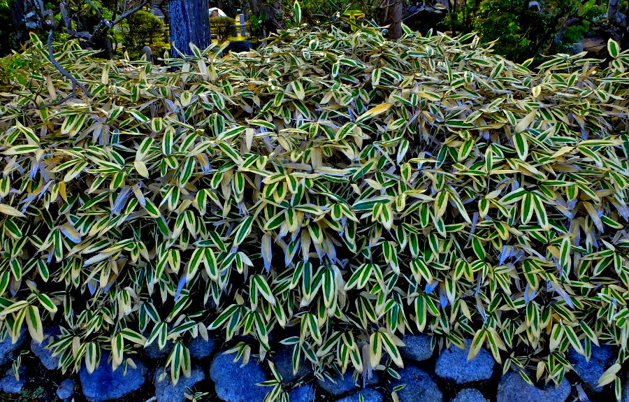 熊笹の葉。 京都市左京区浄土寺真如町、真如堂境内。