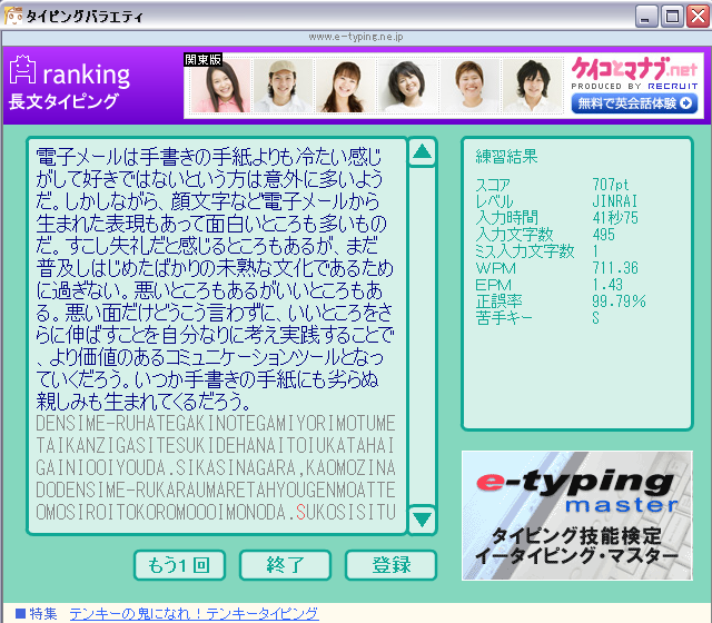濁点とか苦手だったんだけど勢いで打てるな。