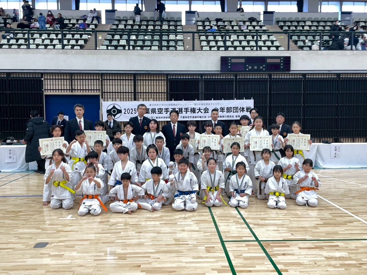 12月21日(日)柏市中央体育館に於いて、「2025千葉県空手道選手権少年大会【少年部団体戦】」が開催されました。男女合わせて全66チーム、計339名の選手が出場し男女混合部、女子の部に分かれ、千葉県チャンピオンを目指して頑張りました。