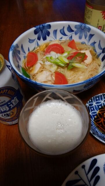 温麵(揖保の糸素麺で作ったにゅーめん)も美味しかったです。雨後曇り。