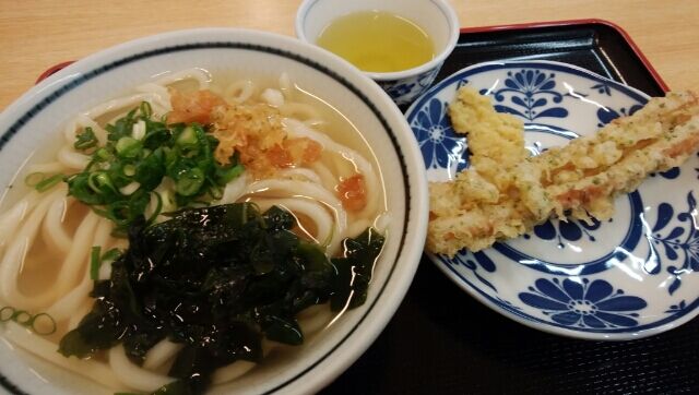 一福のかけうどんと竹輪の天ぷら