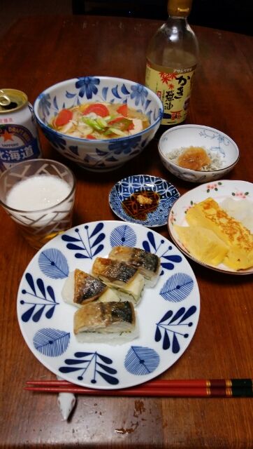 焼き鯖寿司、玉子焼き、温麵、しらす大根