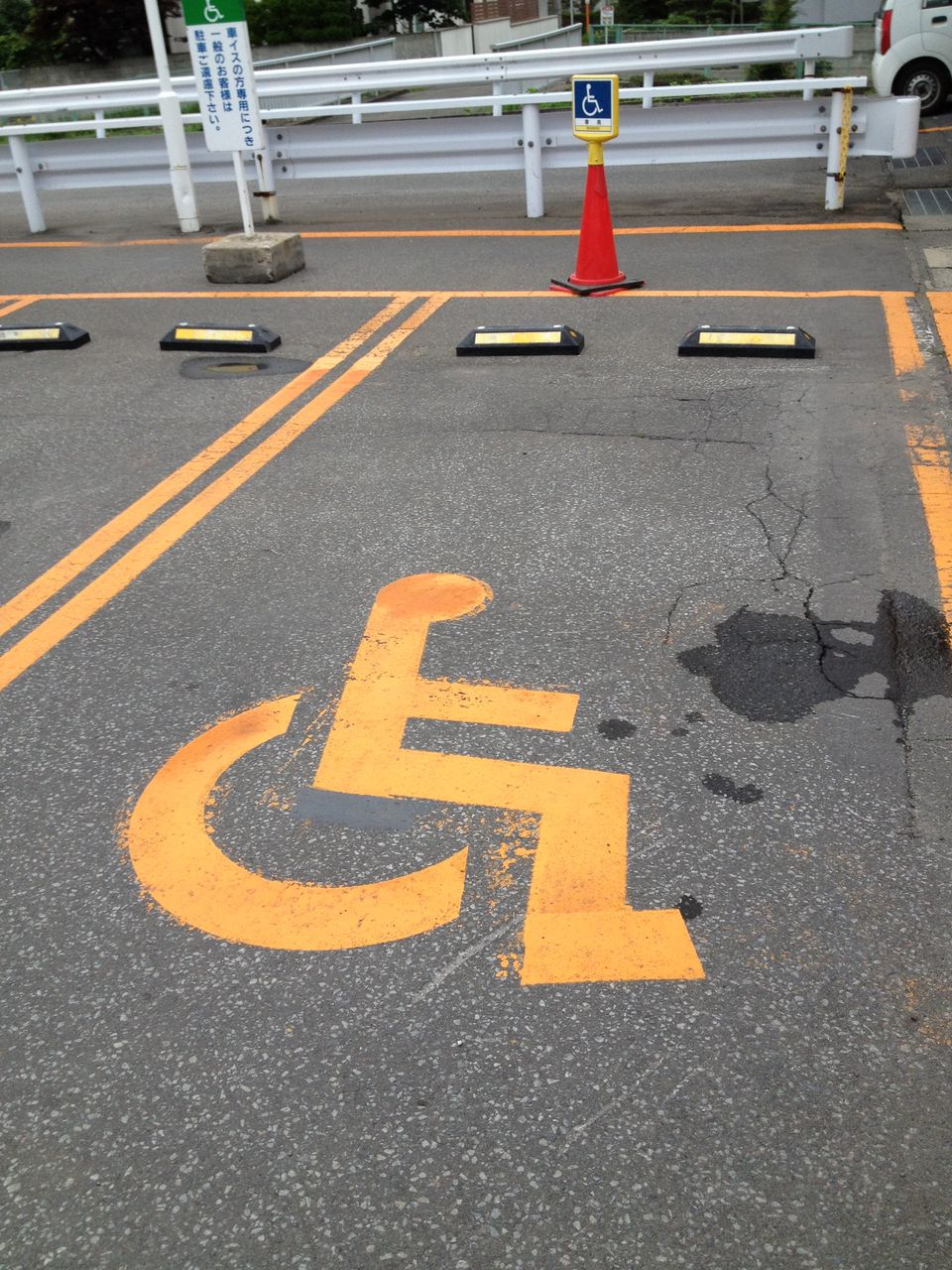 又、あるホームセンターでは、舗装面に書かれたマークが消えかかってかすれていた。あれだと、気がつかないで停めてしまう人もいるかもしれない。