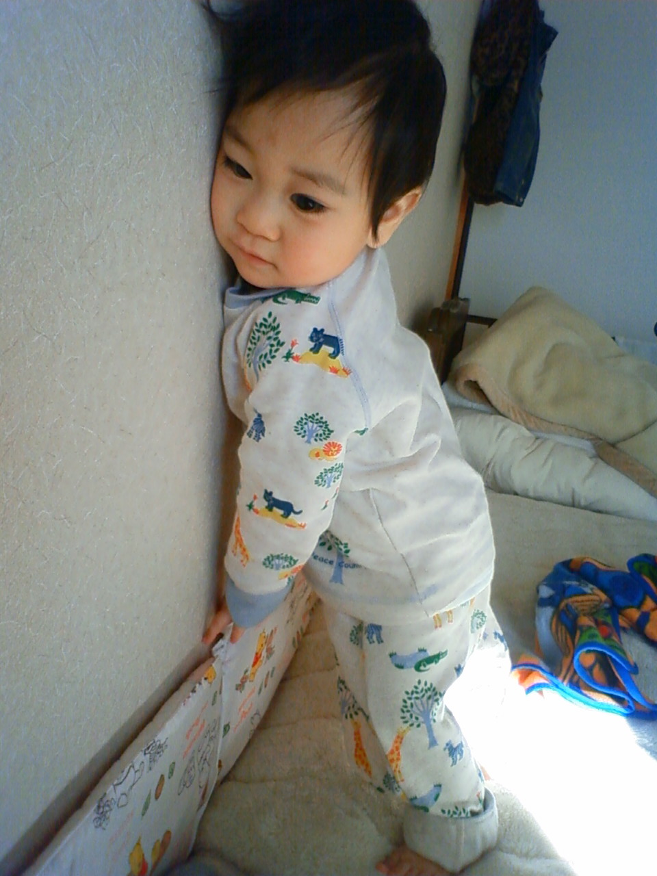 高熱のため、元気ないアユ太郎。『まんまんま〜』『う〜〜ん』と唸りっぱなし。離れると弱々しく泣くので、新米ママはずっと抱いてあげるのでした。