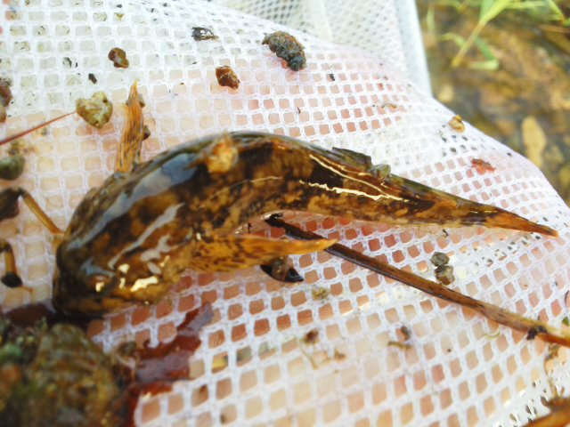師匠のアカハラ(婚姻色ウグイ)産卵場所漁は最近終了。