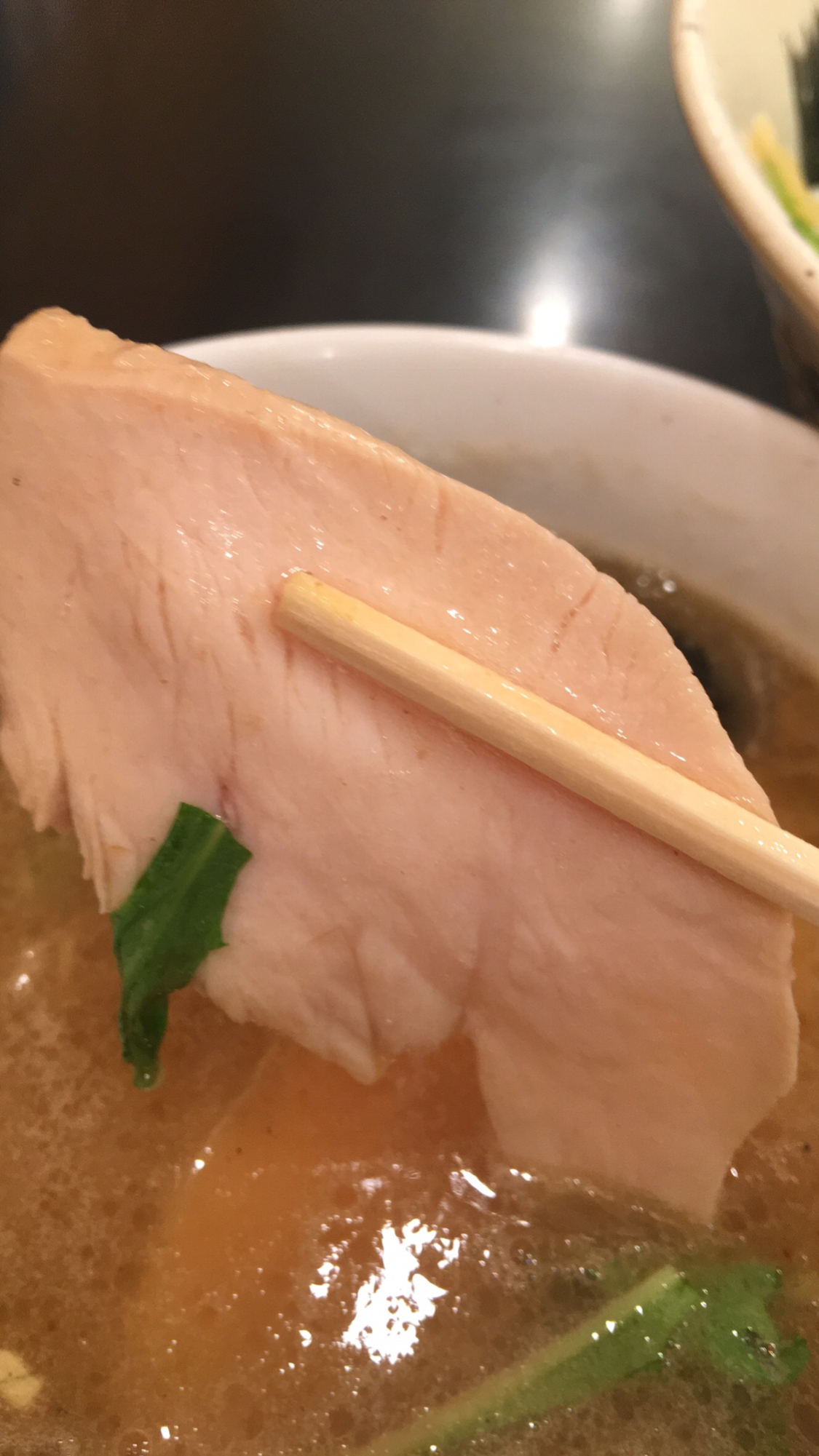 何時もの『鶏つけ麺 (魚介)』の『醤油』をチョイスしテーブル席に着座。