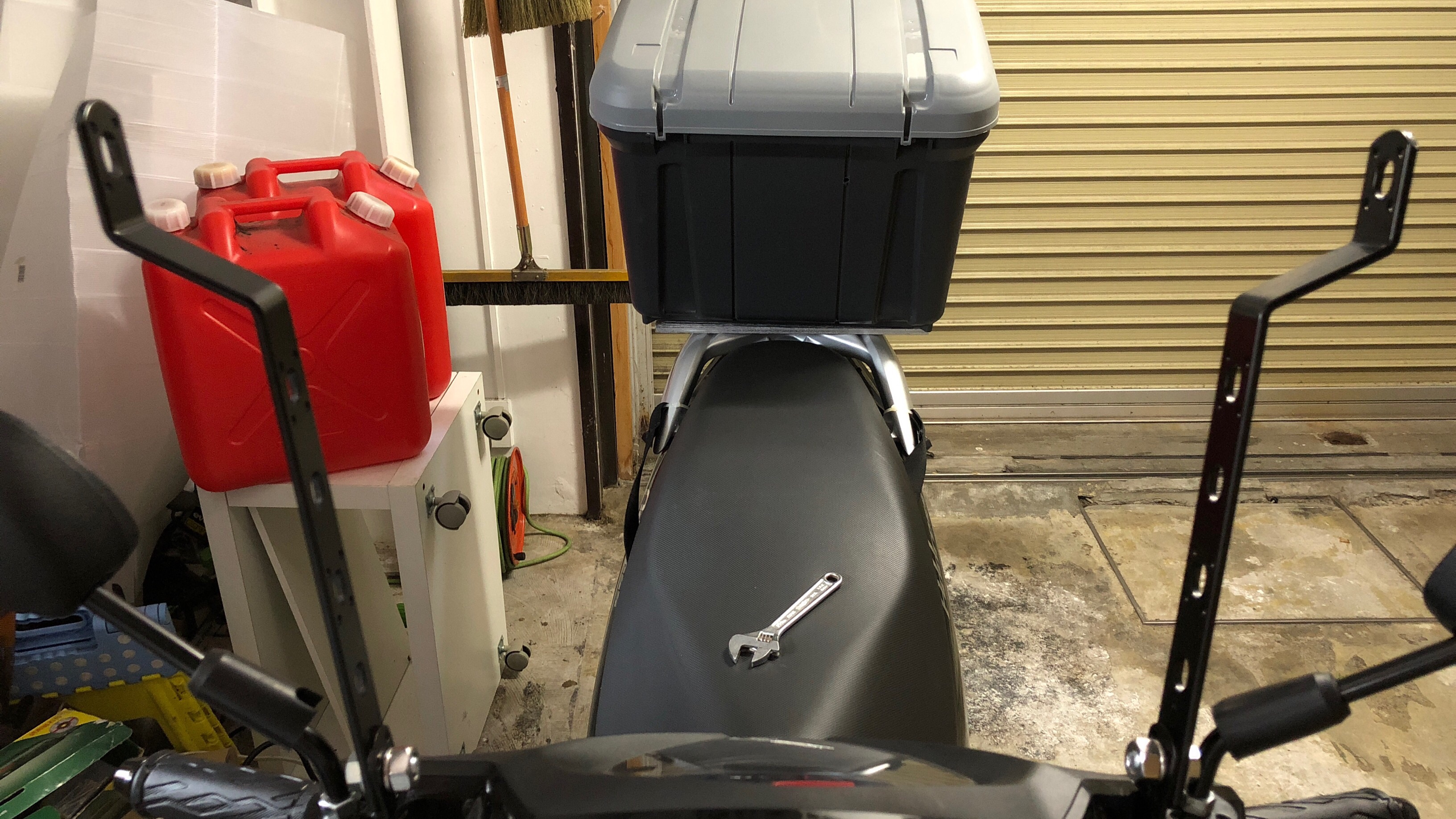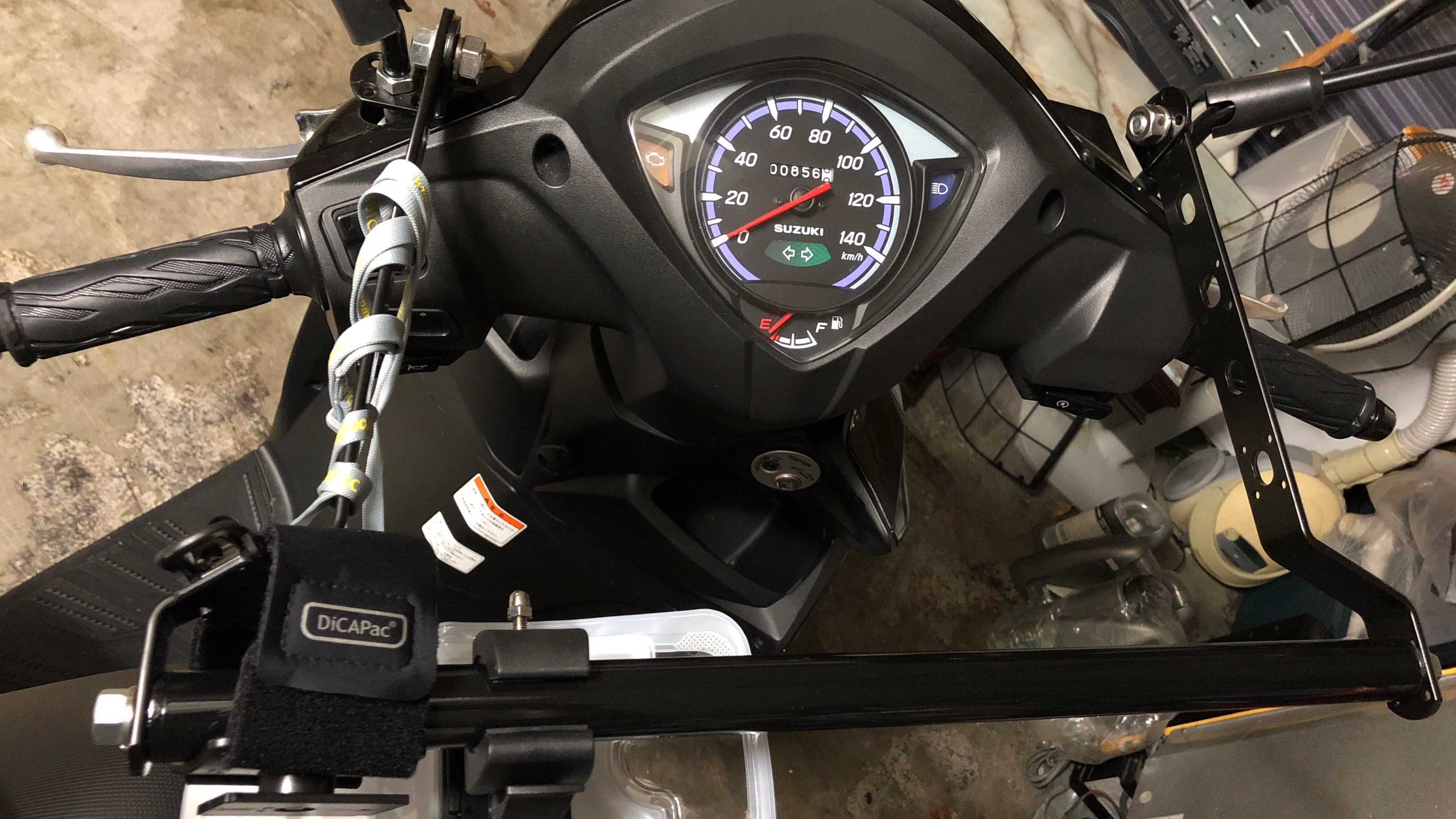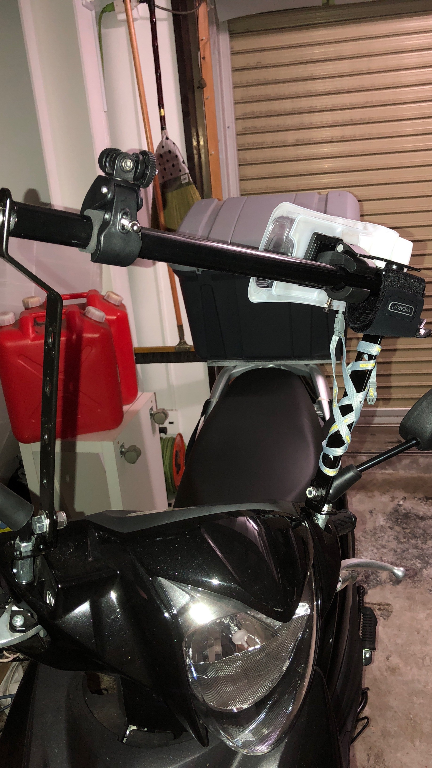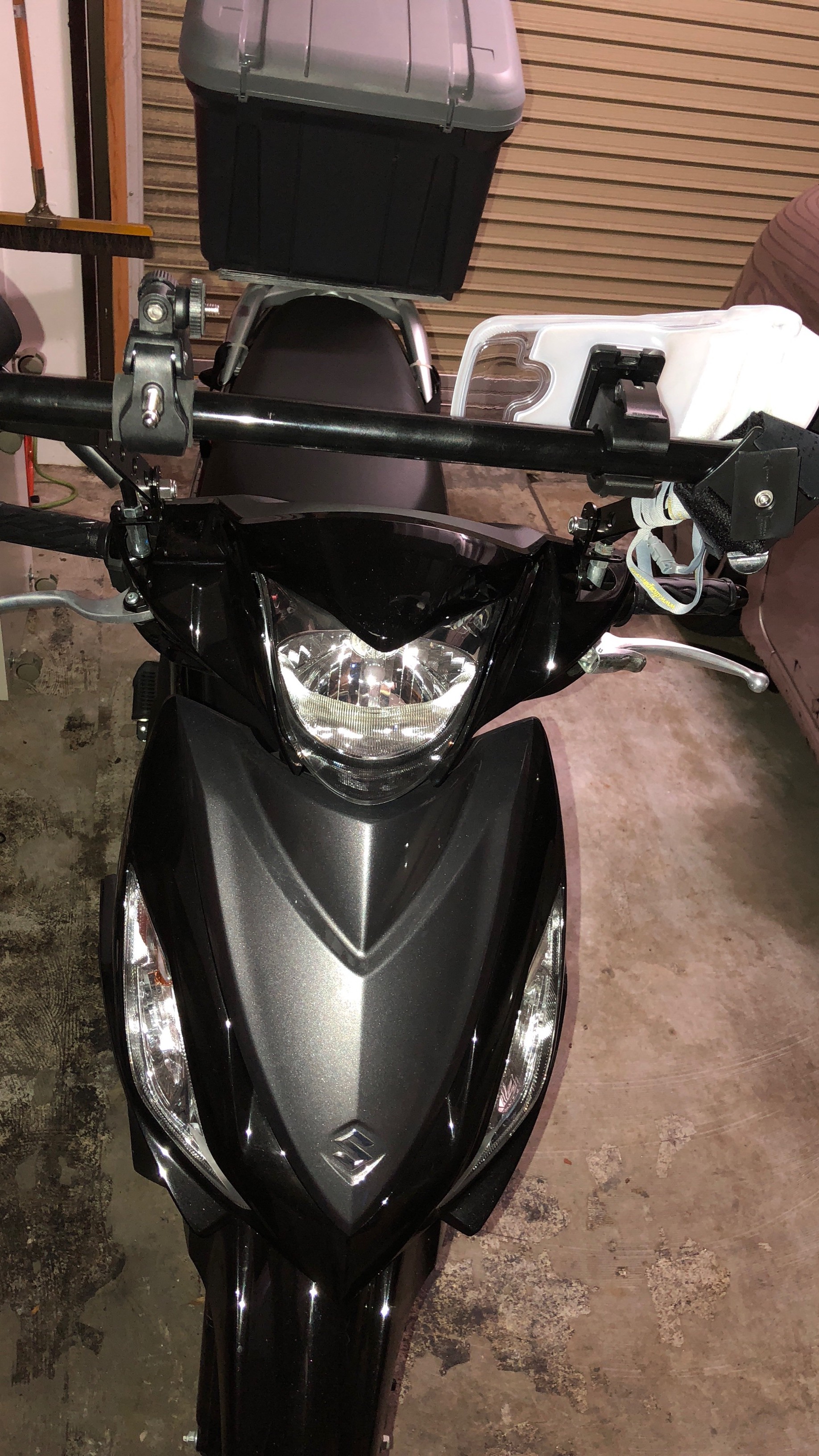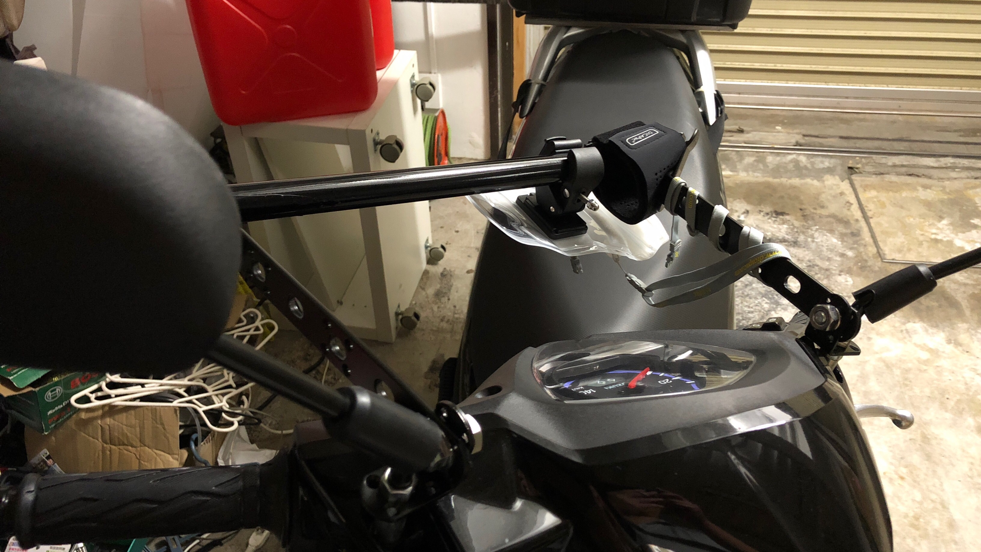 あにをた兄ぃ も……と考えたけど、市販のハンドルバーは原付系には無理っぽいし、左ミラーにはスマホをナビにしてるし……。