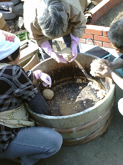 まるで、地中から出てきた物体のような味噌玉たち。