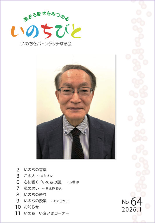 生きる幸せをみつめる会報&定期購読誌「いのちびと」1月号をお届け。「いのちの言葉」をしみじみです。