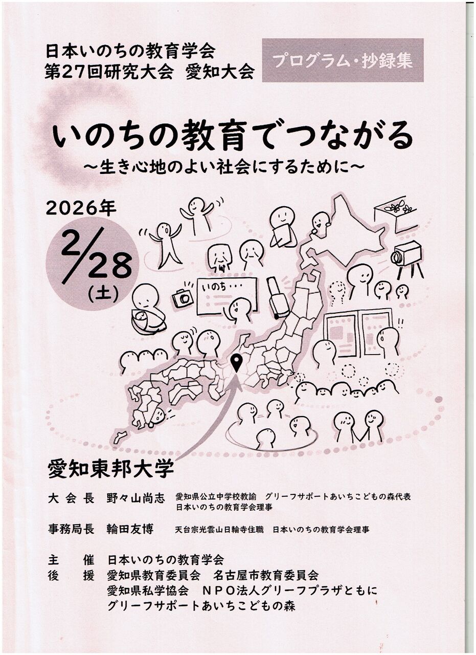 日本いのちの教育学会・愛知大会に伺いました。大会テーマは「いのちの教育でつながる」、私の講演テーマは「いのちの授業をするあなたへ」です。