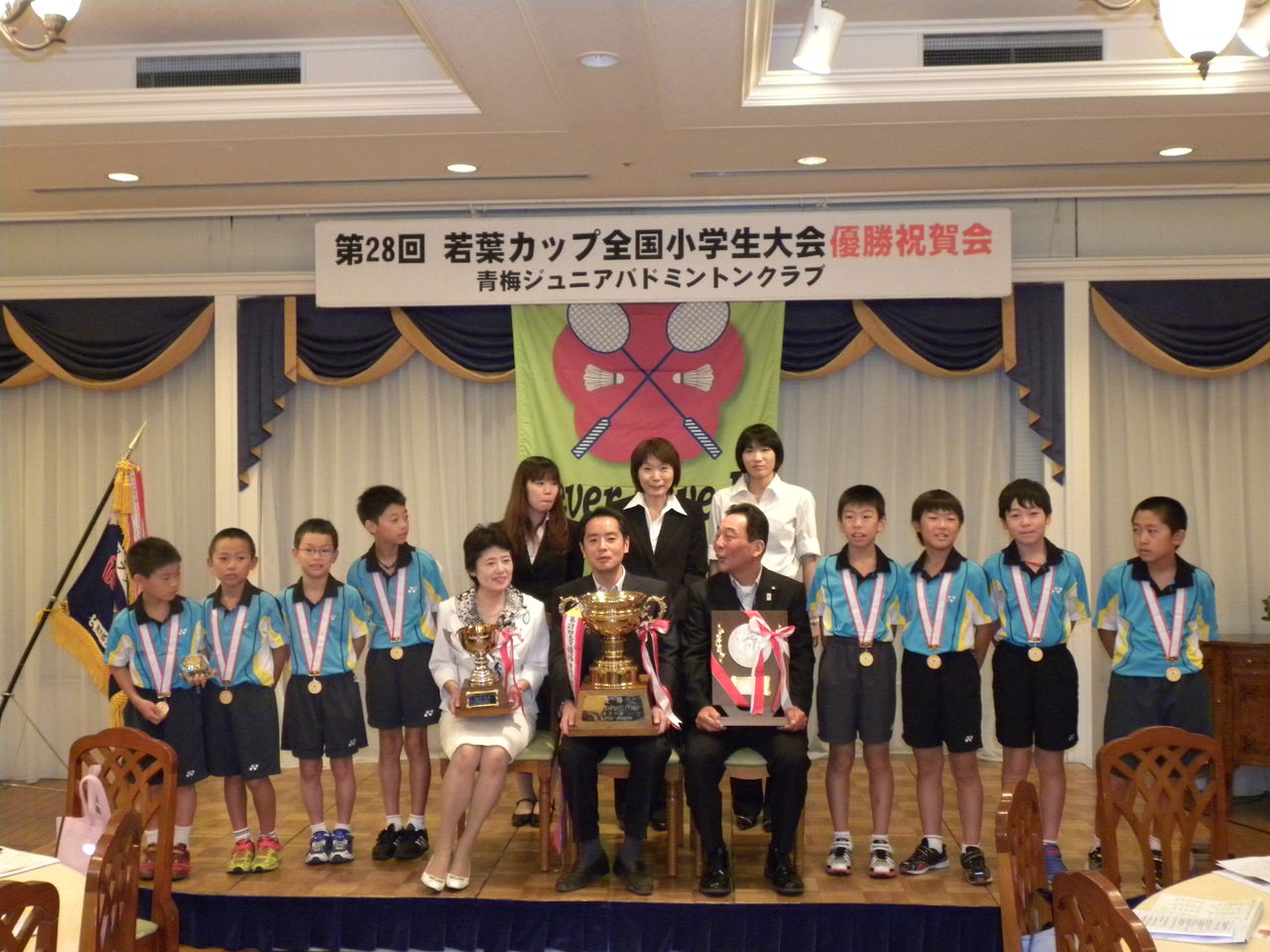 青梅ジュニアバドミントンクラブが、第28回若葉カップ全国小学生大会において、なんと、全国優勝しました。今日は、地元の青梅スイートプラムにおいて、開催された祝賀会に出席しました。