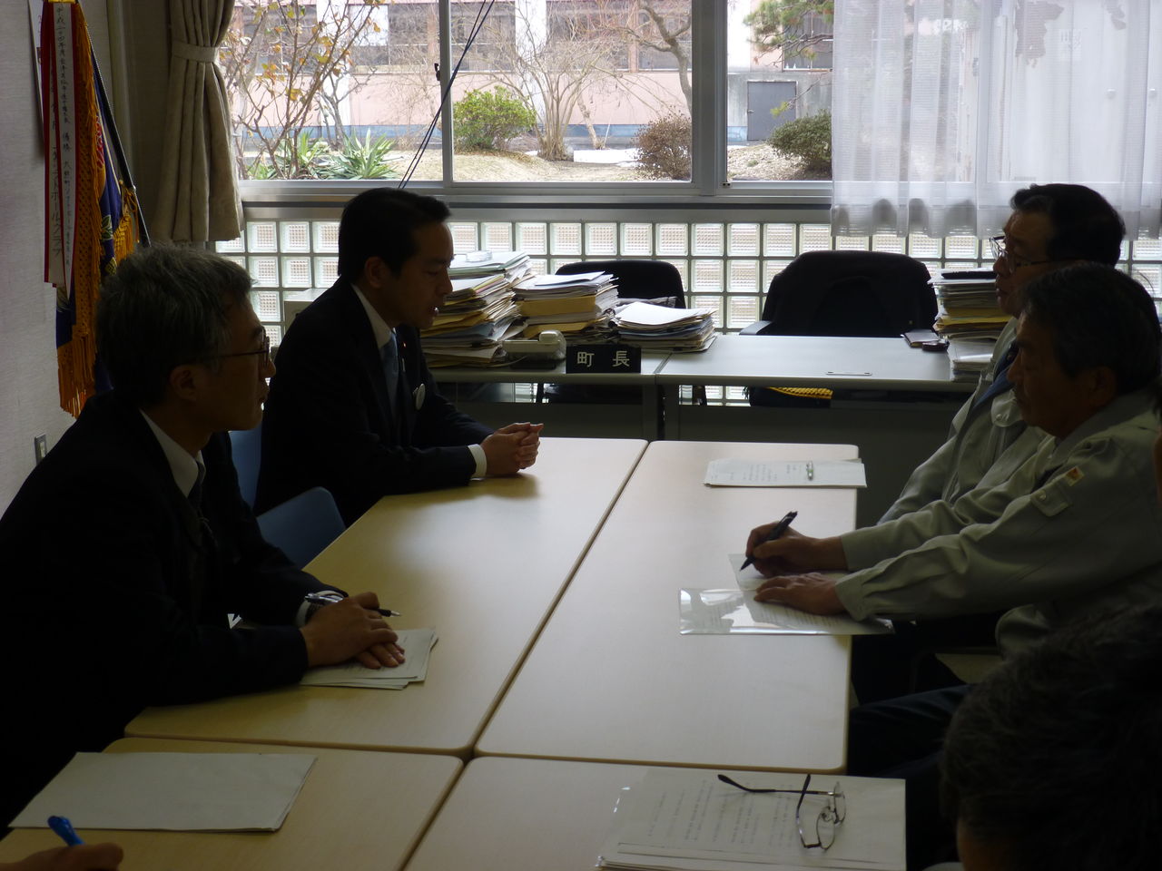 仙台における指定廃棄物の会議を終えた後、大急ぎで福島県会津若松市にある大熊町役場支所に渡辺利綱大熊町長を訪ねました。