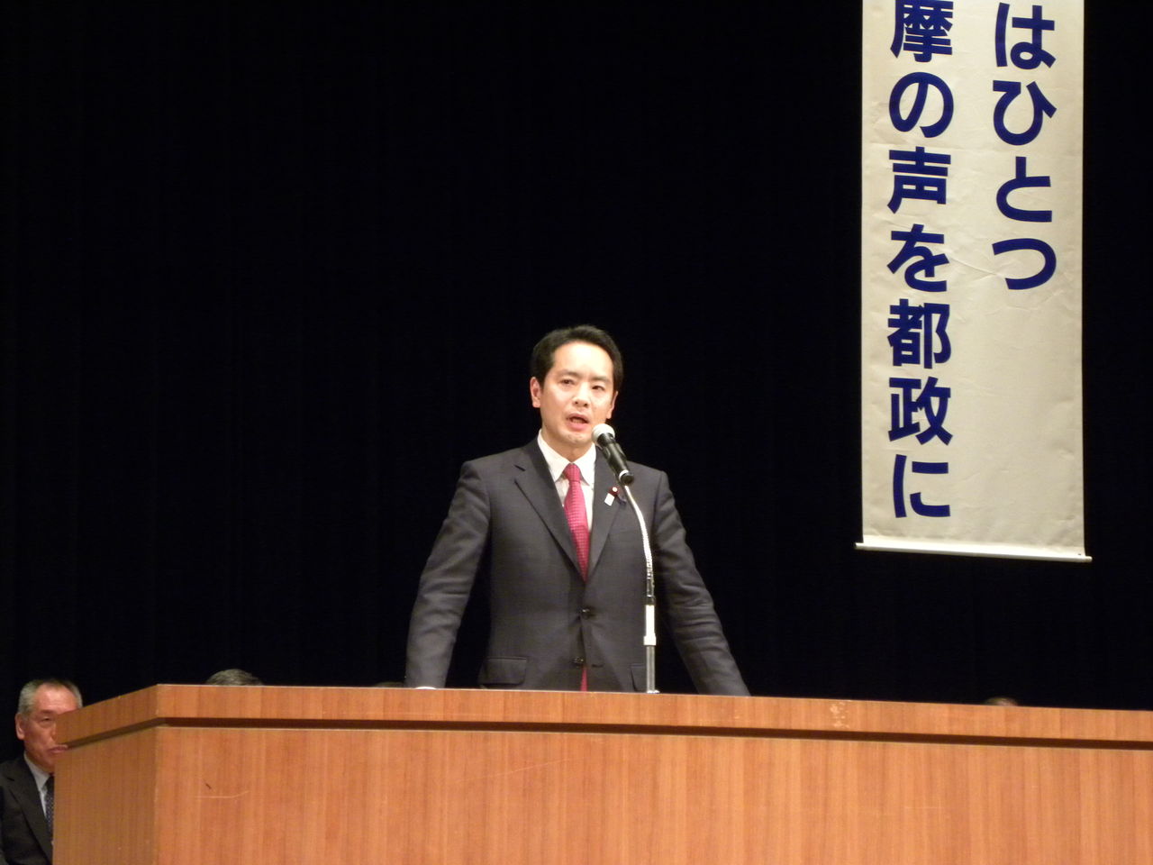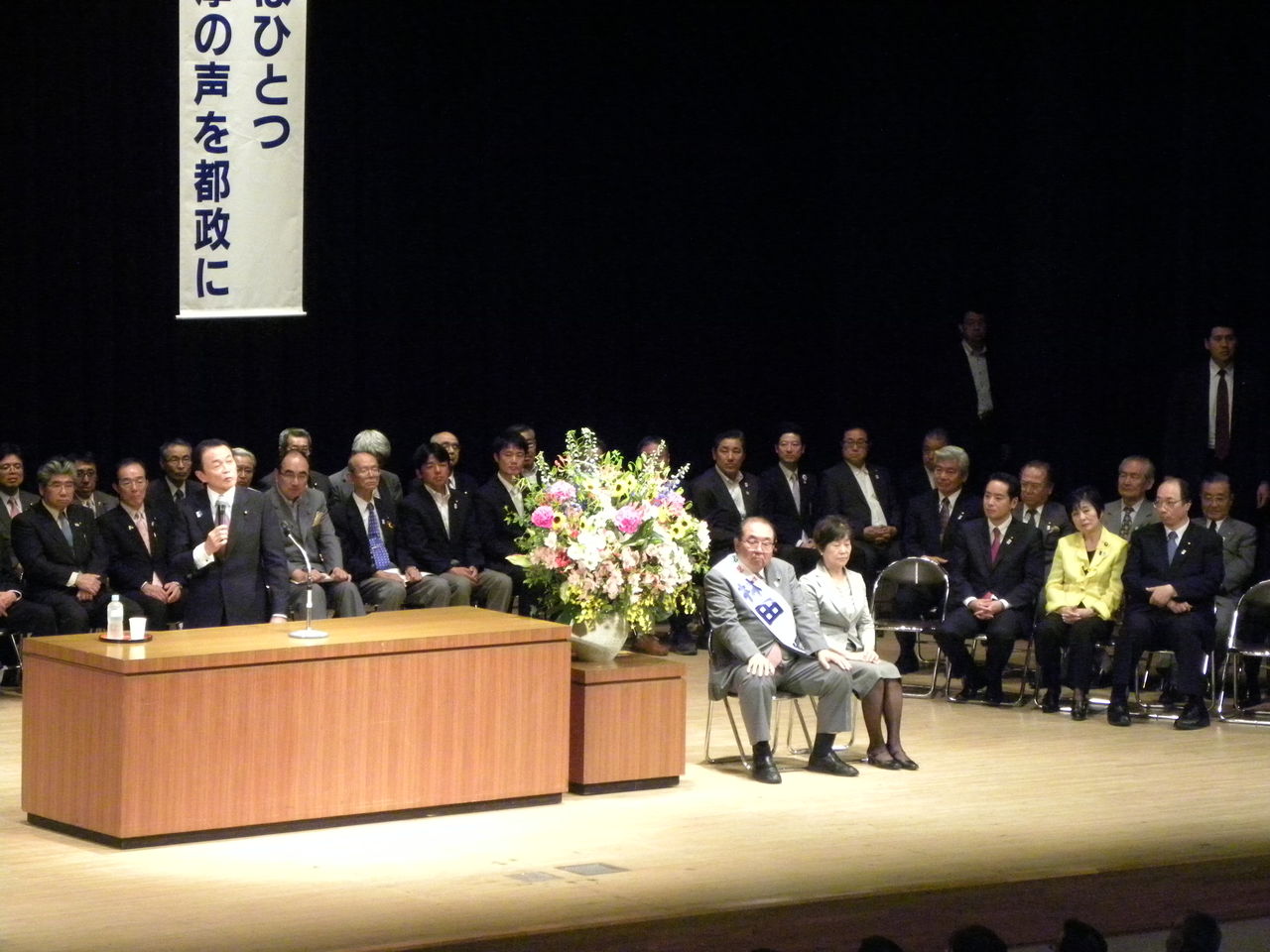地元・福生市の福生市民会館において、1ヶ月後に迫った東京都議会議員選挙の総決起大会が行われました。