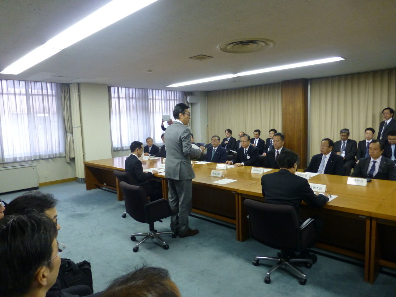 本日、石原伸晃環境大臣、根本匠復興大臣と福島県庁を訪問し、佐藤雄平福島県知事をはじめ双葉郡の8町村長に対し、中間貯蔵施設を双葉町と大熊町の2町に集約して設置する案を回答しました。