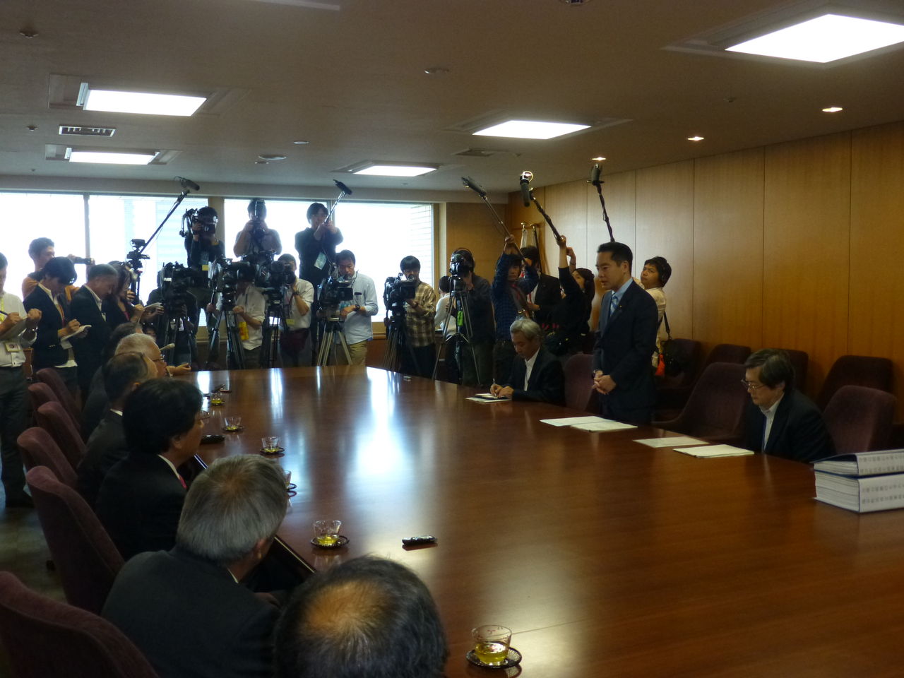 先月の関東・東北豪雨災害により、大変な被害を受けた茨城県常総市の高杉徹市長をはじめ、つくばみらい市、築西市、結城市、古河市、守谷市、八千代町、境町、坂東市の市長や町長が環境省を訪れ、要望されました。