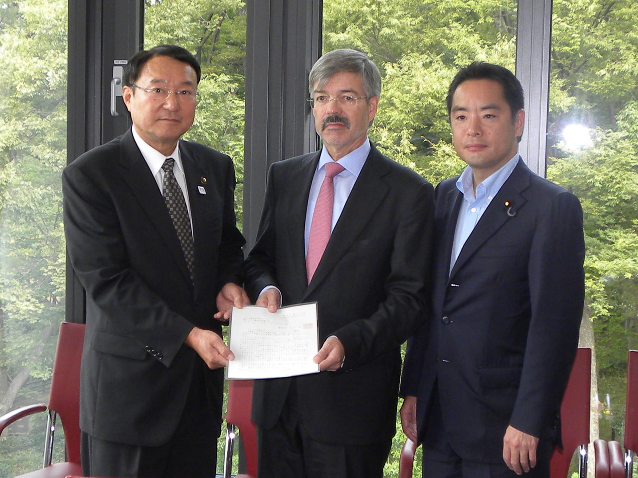 南麻布の在京ドイツ大使館を訪問し、ヴェアテルン大使に対して、浜中啓一青梅市長と一緒に陳情を行いました。
