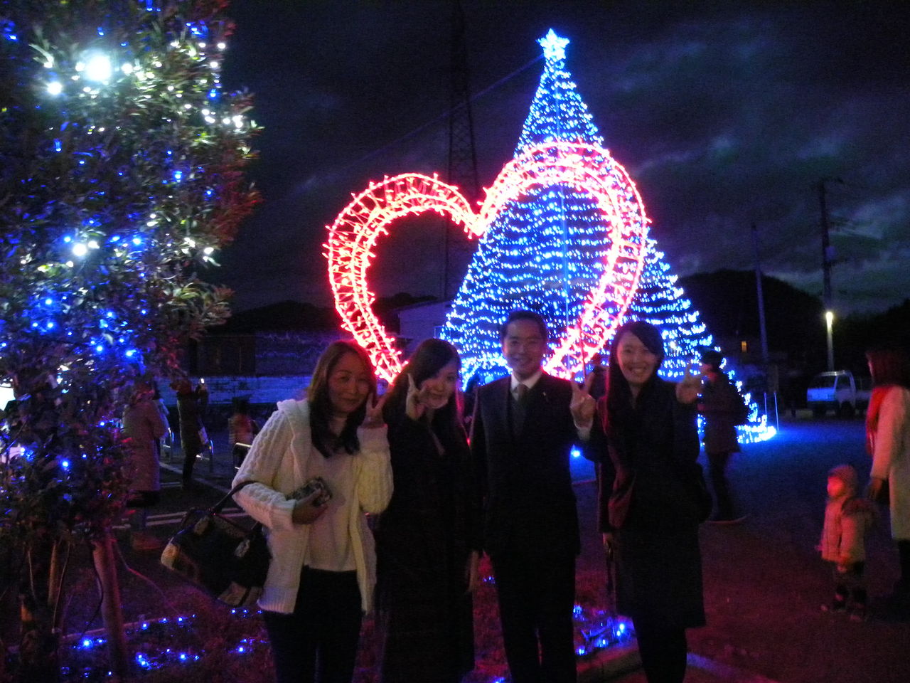 そんな積雪もまだ完全には溶け切らない中、日の出町のこども未来公園において、「おおぐのイルミネーション」の点灯式が行われました。このイルミネーションは、地元の皆さんが「大久野を明るくする会」を結成して手作りで始め、もうすでに今年で12年目となりました。最近は全国どこでもイルミネーションブームですが、そのさきがけと言えます。