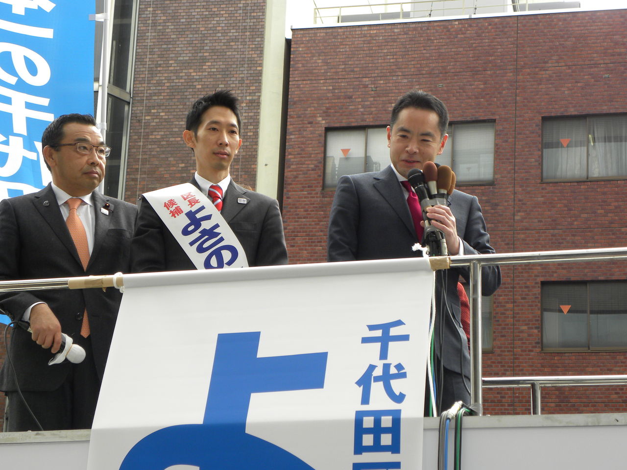 いよいよ1週間の千代田区長選挙が始まりました。私たち自民党は41才の新人「よさの信」候補を応援しています。