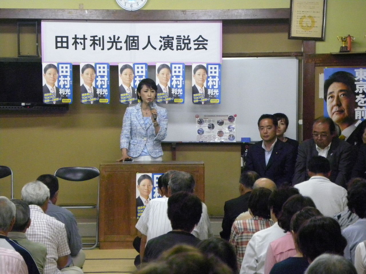 また、夜の個人演説会には、青梅市の各種団体総決起大会に甘利明前経済財政担当大臣、福生市2ヵ所に三原じゅん子参議院議員に応援に入ってもらいました。