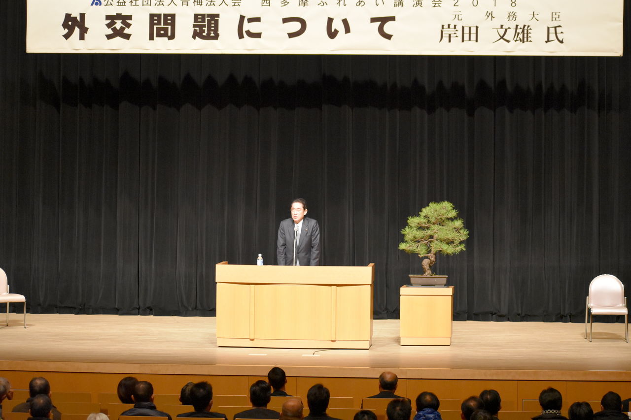 地元・羽村市のゆとろぎ大ホールにおいて、青梅法人会主催による「西多摩ふれあい講演会2018」が開催され、岸田文雄自民党政調会長による外交問題に関する講演が行われました。